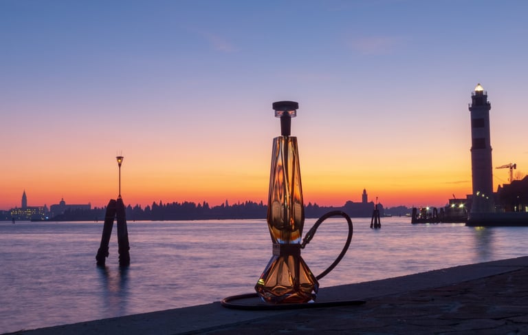 "Explore the 'Fenice Collection' by Arhookah, a showcase of Italian craftsmanship. Each unique piece, designed for a discerning clientele, features prestigious Murano glass, embodying quality and timeless elegance. The 'Fenice Collection' elevates hookah to an art form, providing not only a superior smoking experience but also a masterpiece to be admired."